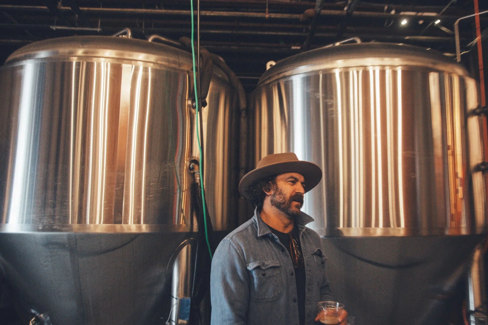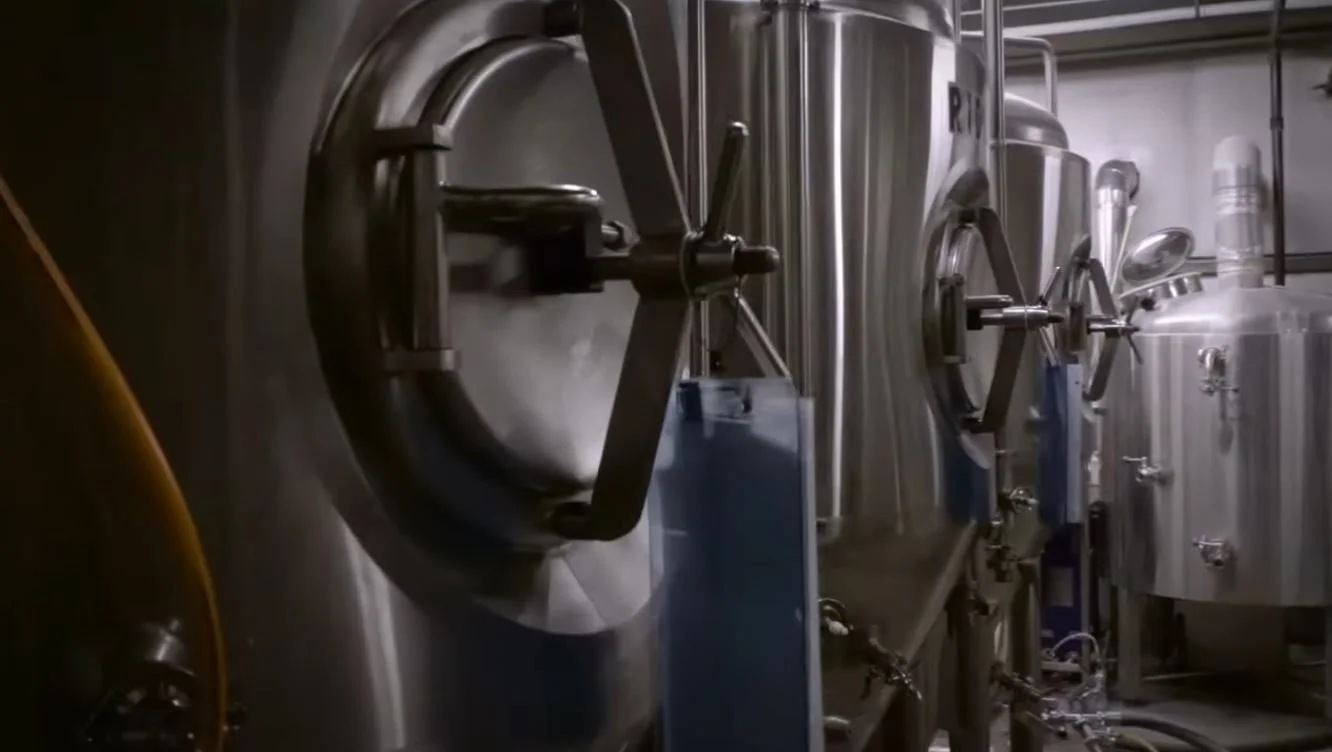 Inside the Brewhouse next to two 15 BBL fermenting vessels