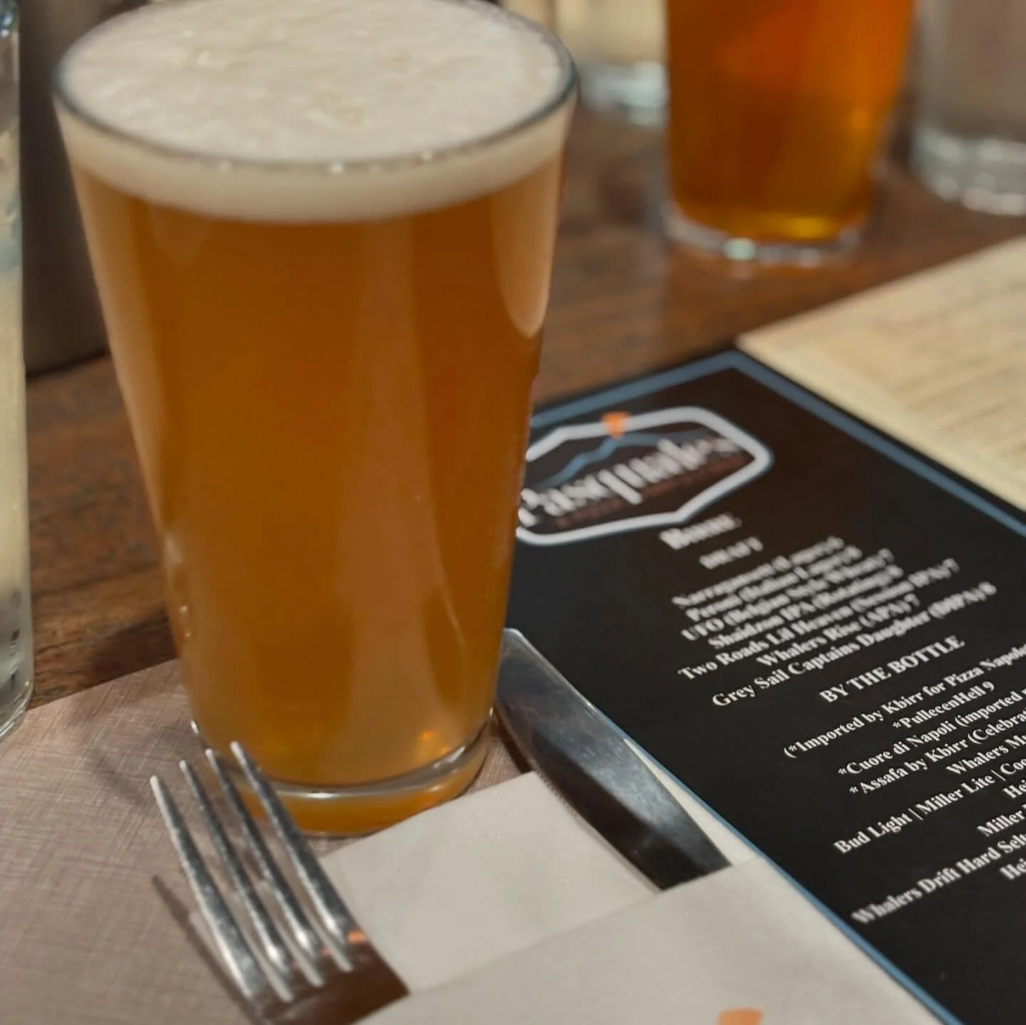 Shaidzon’s Belgian-style Wheat Beer, Shaidzon White at the bar at Matunuck Oyster Bar
