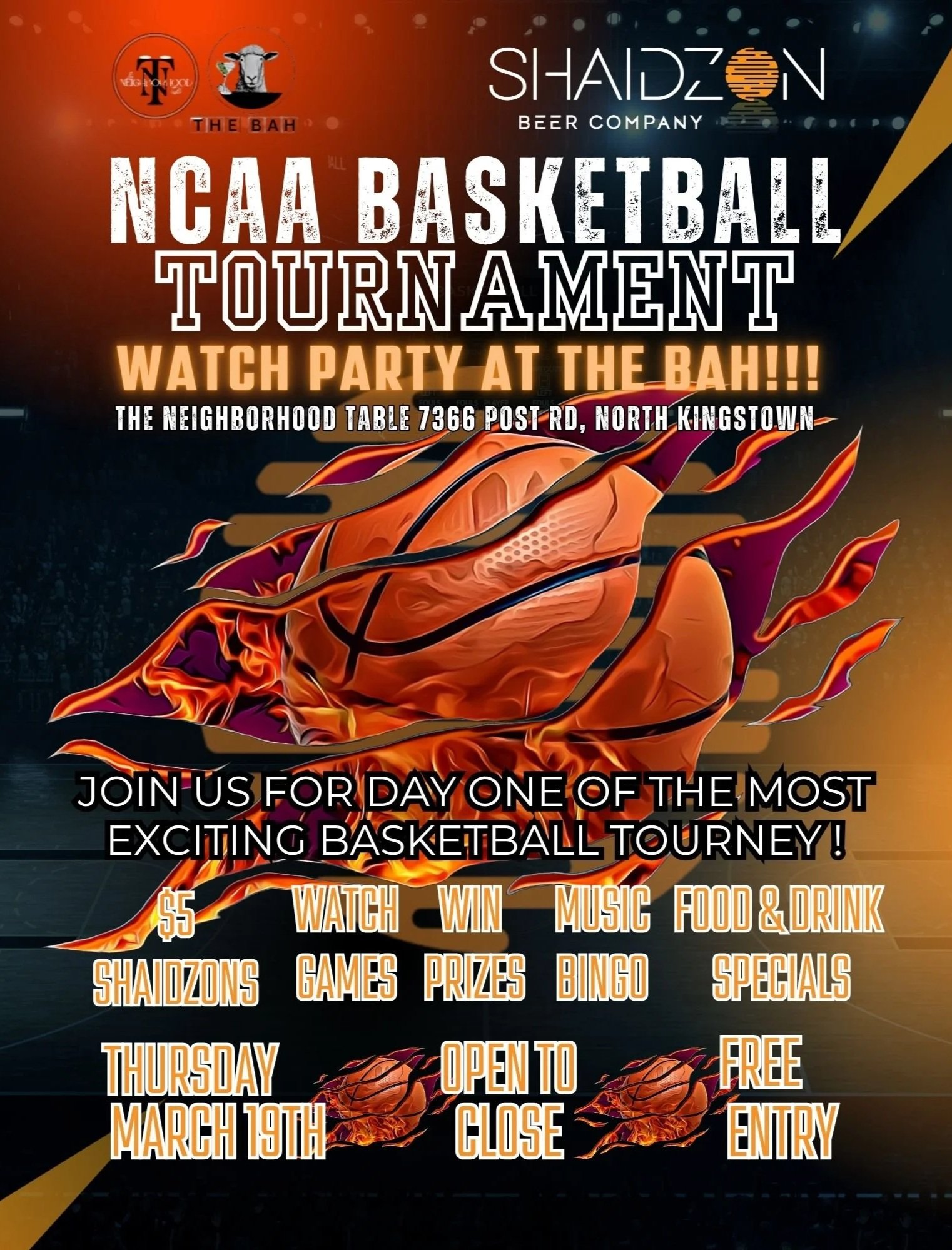 Thursday March 19th: NCAA Tournament Watch Party at The BAH/Neighboord Table